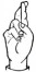 На ћирилици написано ХРАНИМИР ТОСКИЋ састоји се из 14 слова [?]. Исписано ћириличном једноручном азбуком за глувонеме: